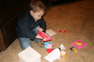 When he got home from school that day, he showed us every Valentine and had to lay them ALL out before we could go to dinner! It was so cute!